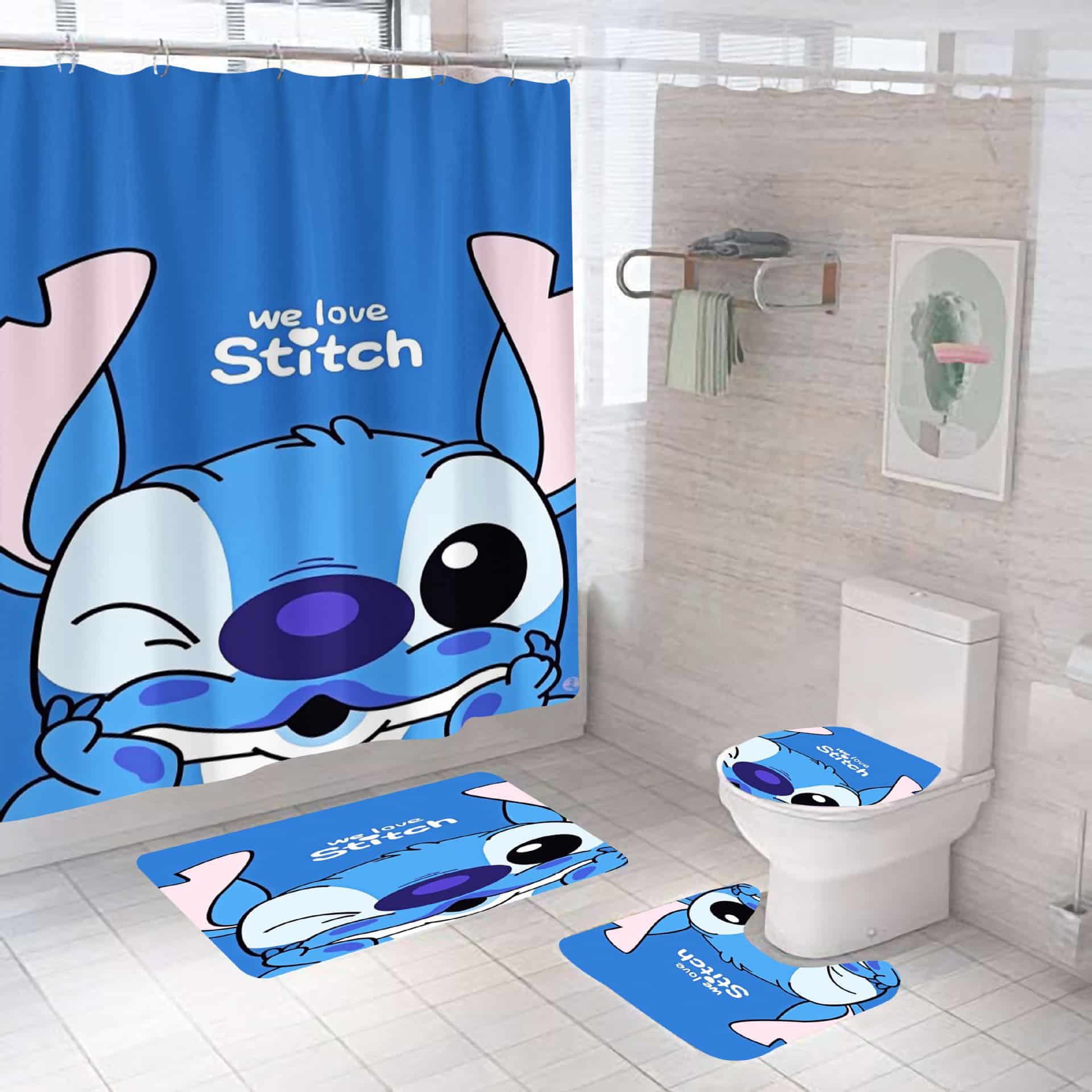 Be the first to review “Stitch Bathroom Shower Curtain Toilet Seat Cover & Rugs Set Rze1”